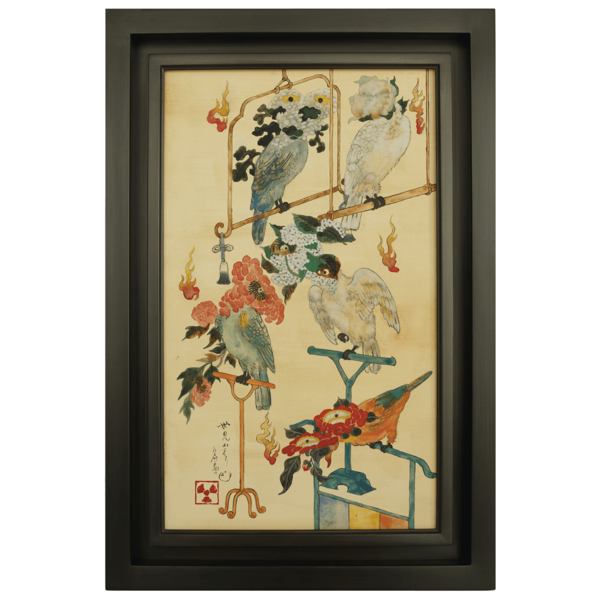 家紋を突き破りユーモラスな動きを見せる鼠、雅楽を演奏する九十九神、顔がすげ替えられた猫や鳥、鹿に化身した豊穣を司るオオゲツヒメノカミ…貴賎や年月、大小に関わらず何が偉い訳ではなく上下もない。人も精霊も目に見えぬものも、植物も物質もただ等しくそこに存在する。