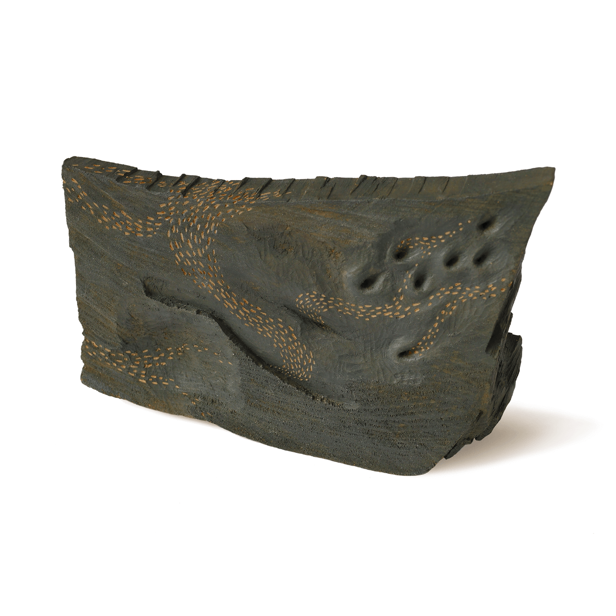 形を作るだけがものづくりではない、たっぷりと時間をかけて目の前の対象とやりとりをする。 途切れ途切れの時間では中々、深いところまで辿り着くのは難しい。 どっぷりと打ち込むうちに、見えてきたものがあった。刻むものが具象であれ抽象であれ、 これまでも分け隔てなく向かっていたいと思っていたが、どこかで差異も感じていた。 その距離が随分と縮まった、と。具象、抽象関わらず、より感覚的なやりとりで彫刻できるようになったそうだ。
